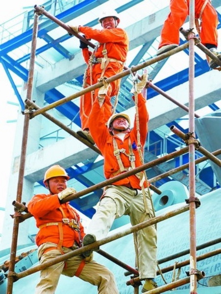 为确保今年11月底国家重点工程天津百万吨乙烯建设项目实现全面生产,中国石化第四建设公司启动劳动竞赛活动。目前奋战在各个项目工地的建设者奋力拼搏,紧张有序地进行着各类大型设备吊装、工艺管道的安装建设。据介绍,天津百万吨乙烯及配套建设项目施工已整体进入设备安装调试阶段。 新华社记者 刘海峰摄