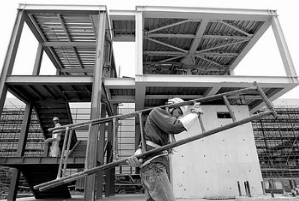 上海虹桥综合交通枢纽工程建设项目的重要组成部分上海虹桥机场扩建工程目前已进入机电设备安装阶段,将于年底完成竣工及初验。上海虹桥机场扩建工程主要包括新建西航站楼、第二条跑道、西货运区及其他配套工程。其中,新建的西航站楼总建筑面积36.4万平方米,是现有东航站楼面积的4倍多。图为4月16日,建筑工人从扩建中的新航站楼工地走过。