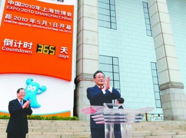新华社北京5月1日电 (记者车玉明) 中国2010年上海世博会倒计时一周年暨计时牌启动仪式1日在天安门广场隆重举行。中共中央政治局常委、全国人大常委会委员长吴邦国出席并启动计时牌。他强调,中国政府将全力以赴做好各项筹办工作,期待着与世界各国朋友一道,在异彩纷呈的世博会上,感受文化创意,体验科技进步,交流发展理念,共享文明成果,凝聚建设和谐、幸福、美好明天的智慧与力量。
