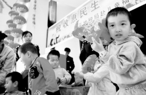 五四青年节前夕,辽宁沈阳市地方税务局和平分局团委组织团员青年来到沈阳市儿童社会福利院,为这里居住的孤残儿童发放慰问品。该福利院居住着300多名孤残儿童,沈阳地方税务局和平分局坚持多年为福利院捐款捐物献爱心,并创建了“和平地税爱心基地”。 本报记者 李景录摄