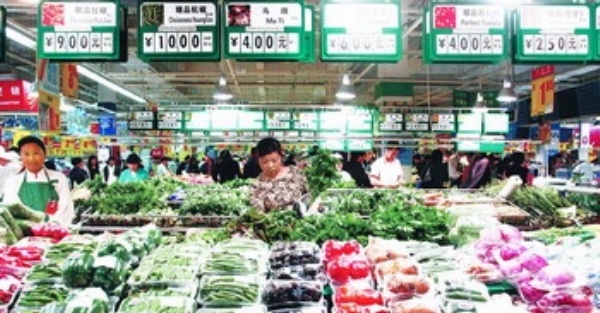 5月2日,顾客在安徽合肥家乐福环球广场店内选购蔬菜。 “五一”期间,安徽合肥大型超市内各种商品货源充足,价格平稳,出现节日市场购销两旺的良好态势。 郭 晨摄 (新华社发)