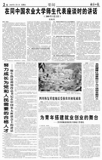 胡锦涛在同中国农业大学师生代表座谈时的讲话