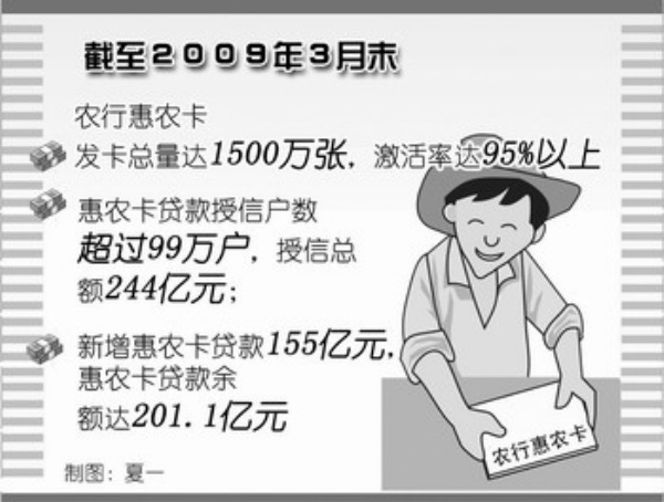 上图:今年,农业银行惠农卡营销采取点面结合、重点突破的推广方式,推广范围将从18家分行扩大到全国37家分行,实行有效发卡,做好面上和点上的结合,力求实现广覆盖。 (王 智)