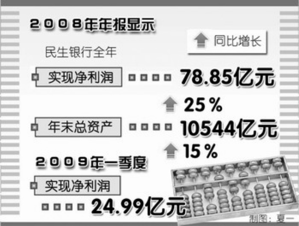 下图:2008年末,民生银行事业部存款余额比年初增加365亿元,增幅31.26%,贷款余额比年初增加292亿元,增幅15.84%。2008年末,民生银行的不良贷款余额79亿元,不良率从2007年末的1.22%下降到1.2%;今年第一季度末,不良率为1.17%。 (王信川)