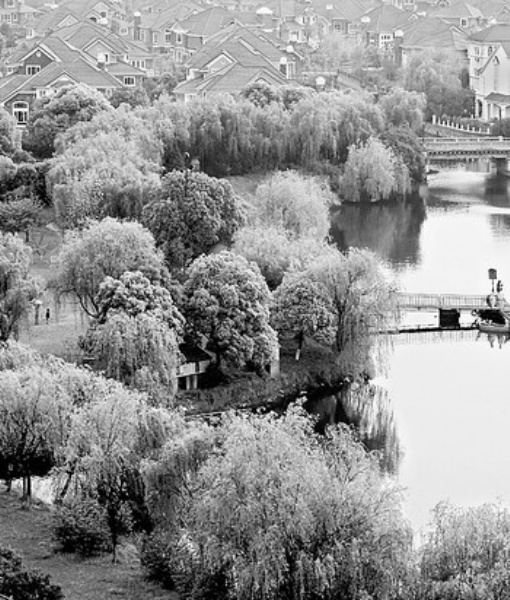 上图:绿树掩映的园林式住宅区 沈生华摄