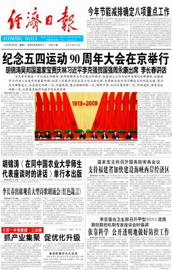 纪念五四运动90周年大会在京举行