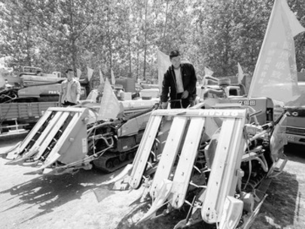 5月5日,安徽蒙城许疃镇矿西村农民准备将履带式收割机装上汽车,赶赴四川广汉进行跨区麦收作业。当天,安徽蒙城县许疃镇矿西村农民驾驶汽车运载12台履带式收割机,赶赴四川广汉进行跨区麦收作业。他们将从四川广汉开始,辗转湖北、安徽、山东、天津、河北等地参加麦收跨区作业“会战”。这是今年蒙城县派出的第一支跨区麦收作业队伍,其后将有200多支跨区作业队于近