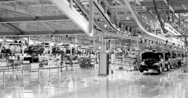 4月8日,一汽轿车股份有限公司一厂总装车间里,机器轰鸣,工人们正紧张地工作着。这条柔性生产线上,不同颜色、不同车型的车辆依次下线。这条生产线每天混流生产马自达6、奔腾的4种车型,其中最引人注目的是即将上市的一汽自主研发产品奔腾B50。