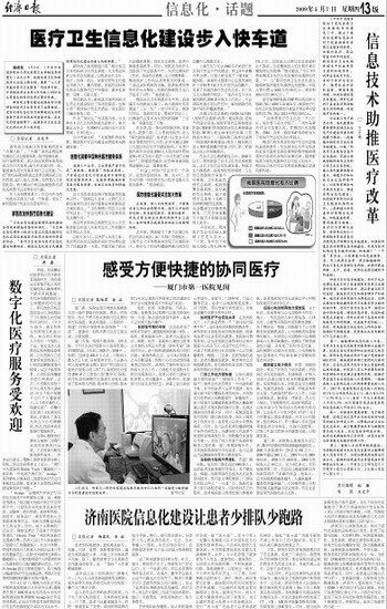 厦门第一医院院长杨叔禹告诉记者,数字化医院的管理成效越来越明显。2003年医院接待门诊量为130万人,2008年超过260万人,2005年只有1000张病床,2008年有2400张。2008年医院收入近10亿元,支出8亿多元,名列福建省第二位。信息化让杨叔禹院长对医院管理有了更深的体会,他表示,公立医院规模越来越大、人越来越多、覆盖范围越来越广,而传统管理工具和管理模式越来越不适应需求,信息化是建设现代医院的必由之路。