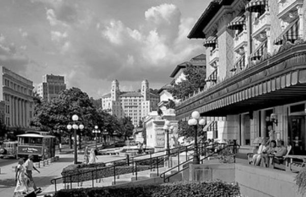 下图:阿肯色州居民享受着温暖的气候。景色美丽和气候宜人,使阿肯色州成为一个全年都非常适合户外活动的地方,十分适合休闲的运动有高尔夫、登山、划船、狩猎、捕鱼以及观鸟。小石城市中心更是当地居民节假日喜欢闲逛的好地方。左图为阿肯色州春季小石城市中心街景。