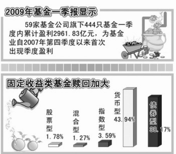 近日披露完毕的基金一季报显示,59家基金公司旗下444只基金一季度累计盈利2961.83亿元(包含公允价值变动损益),为基金业自2007年第四季度以来连续五季亏损之后首次出现季度盈利。