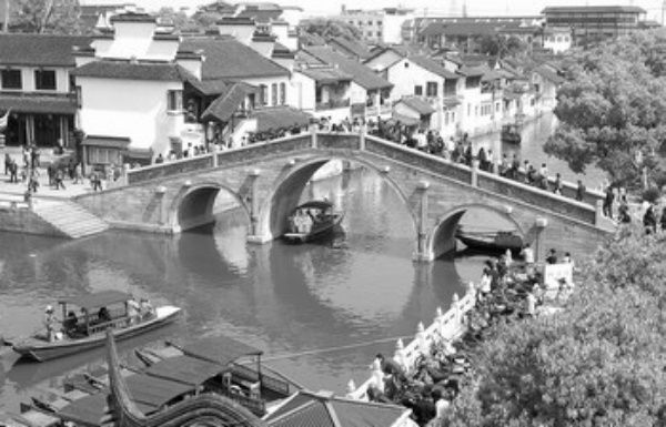 5月7日,江苏昆山千灯镇,独特的水乡风貌、完好的古镇风貌、优美的昆曲表演吸引着来自各地的游客。当地制定了以保护古迹和人文景观为主要内容的古镇规划,大力开发历史文化旅游项目。该镇今年已接待游客30万人,同比增长近30%。 本报记者 乔金亮摄