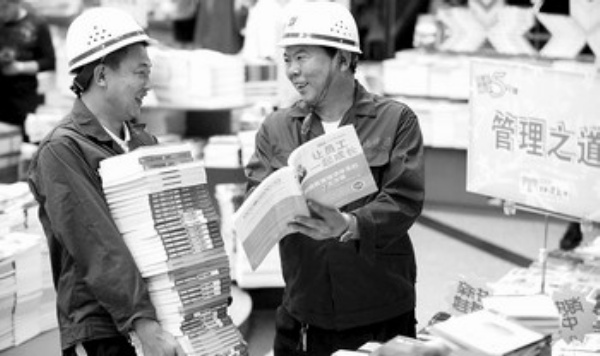 5月5日,河北建设集团有限公司援建绵阳平武县响岩镇员工正在成都一家书店购书。河北建设集团有限公司投资上万元为援建四川省绵阳市响岩镇涪江村的工地工人购买图书,丰富职工文化生活。 本报记者 李景录 李江天摄影报道