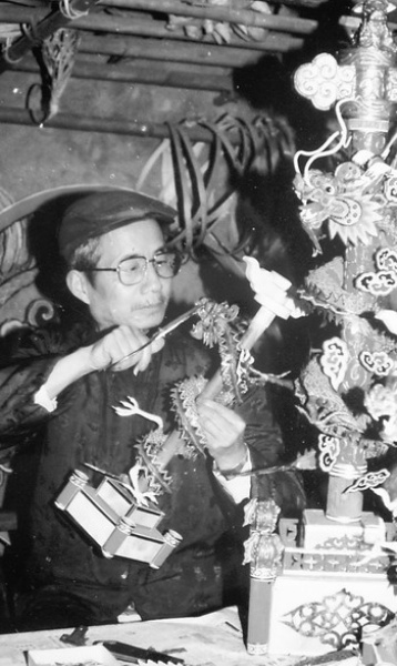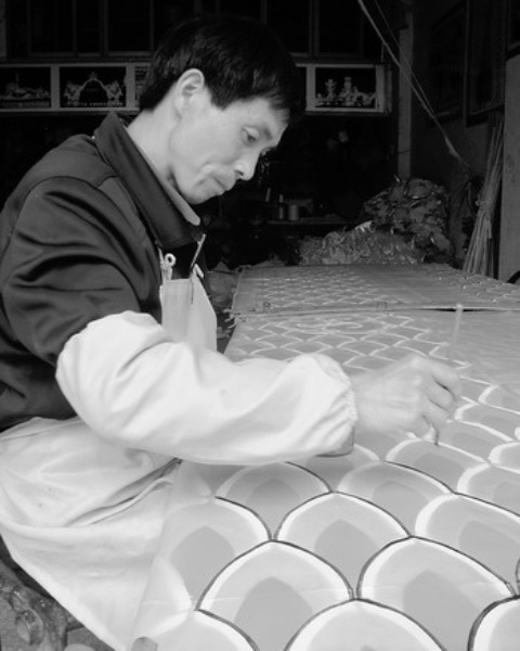 傅泉太至今还记得,小时候自己一放学就去看扎纸。正是这份爱好,让他放弃了中学教师的工作,走上了纸扎艺人的道路。1986年,傅泉太成立了县里的第一个个体扎龙厂————铜梁县安居纸扎工艺厂。有了自己的作坊,傅泉太就琢磨开了:
