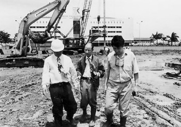 ⑤ 江欢成(中)在印尼雅加达塔施工现场。