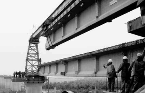 5月11日,由中铁电化局西铁工程公司承建的包(头)西(安)铁路王子特大桥开始架梁。这标志着包西铁路桥梁施工进入新的阶段。 包(头)西(安)铁路共有特大桥70座,目前已经完成全部工程量的70%左右。 焦宏涛摄 (新华社发)