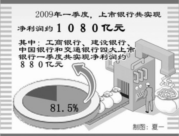 今年一季度,上市银行共实现净利润约1080亿元,其中工商银行、建设银行、中国银行和交通银行四大上市银行一季度共实现净利润约880亿元,占上市银行净利润总额的81.5%