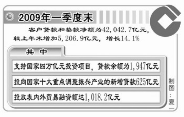 根据宏观调控政策要求,今年一季度建行在风险可控的前提下加大了信贷投放力度。一季度末,建行客户贷款和垫款净额为42042.7亿元,较上年末增加5206.9亿元,增长14.1%。