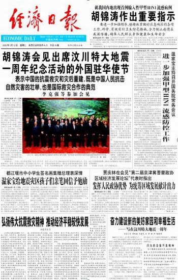 弘扬伟大抗震救灾精神 推动经济平稳较快发展