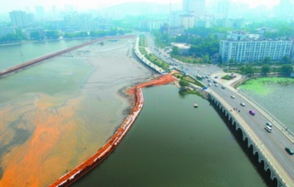 5月15日拍摄的武汉东湖隧道施工工地。东湖隧道是武汉市首条湖底隧道,是武汉二环线跨越东湖的关键工程,隧道全长1585米,最深处为地下10多米。 新华社发