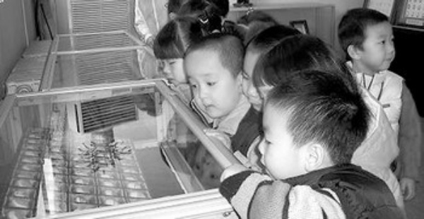 在北京自然博物馆里,丰富的展品把这些小游客深深吸引住了。