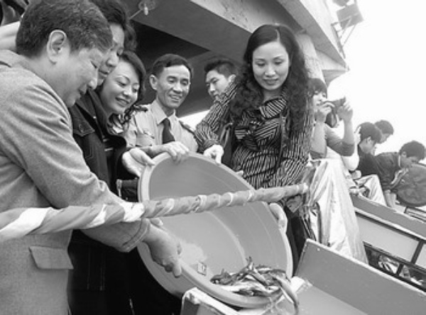 5月8日上午,农业部与四川省在宜宾市的长江、金沙江、岷江接合部水域举行主题为“为了长江的明天”珍稀特有鱼类增殖放流活动。