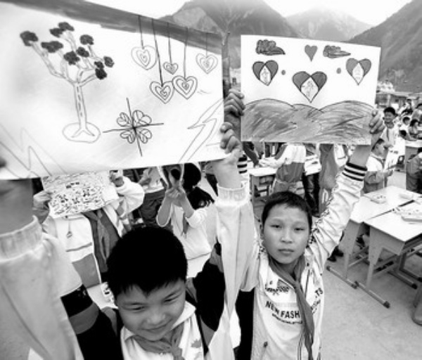 四川映秀小学的校园里正在举办一场主题为“带上你的翅膀”的学生集体绘画活动。困难是短暂的,有希望就有未来,从新校园的建设,到教师队伍的补充,映秀小学的孩子们在学习之余享受着丰富多彩的课余活动。 本报记者 李景录摄