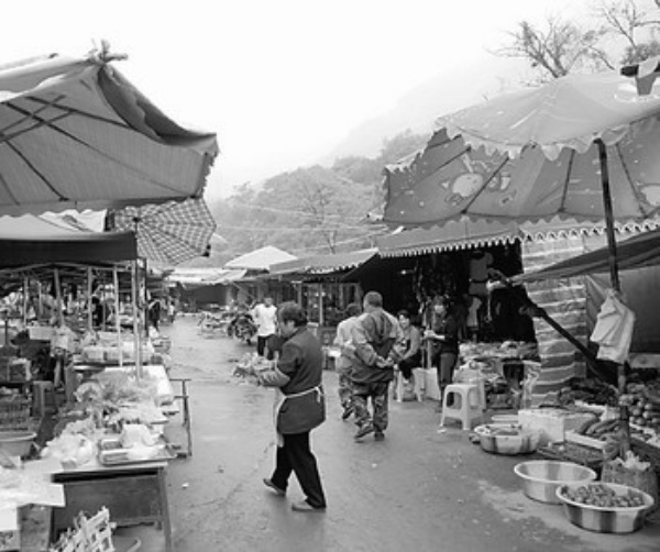 在新建的映秀小学操场上,由10多个孩子组成的鼓号队正在认真地排练着,不时传过来朗朗的笑声。数十米远外,就是“铁军菜市场”。走进市场,发现里边很热闹,菜架上蔬菜琳琅满目,买菜的人接踵摩肩,援建工地上的工人们三三两两地围坐在路边的餐馆里,享受难得的闲暇。