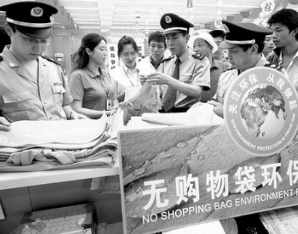 近日,江苏连云港市连云工商分局执法人员充分履行监管职能,深入辖区内各大超市、集贸市场检查“限塑令”执行落实情况,实行塑料购物袋有偿使用制度,并禁止生产、销售、使用厚度小于0.025毫米的塑料购物袋。