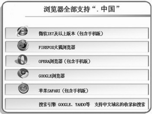据介绍,CNNIC先后在中文域名领域完成三项核心互联网国际标准制定,确保中文域名完全符合中国人的传统文化和语言习惯。截至目前,各主流浏览器也都实现了对“.中国”域名的直接支持。“.中国”域名的应用环境日臻完善。