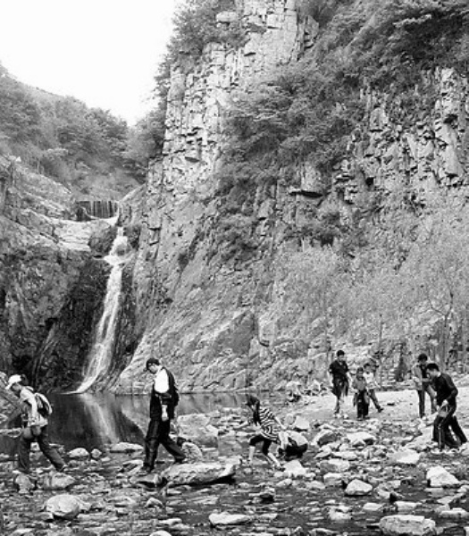 下图:日前,一队游客在素有“齐鲁小三峡”之称的山东省五莲县九仙山风景区龙潭大峡谷旅游。 王金虎 徐健摄