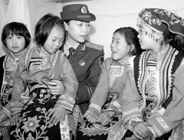 就在边防官兵准备起程时,不知是那位学生起的头,大家哇的一下全都哭了,他们将边防官兵团团围住,手紧紧拉在一起。