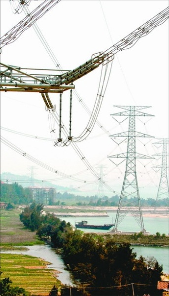 福建省电力公司员工设计建成的莆田燃气电厂—莆田500千伏输电线路跨海段19号塔,是我国第一基500千伏海上铁塔。该线路的建成投运,有效提高了福建电网安全稳定运行水平,并将有效缓解迎峰度夏压力。