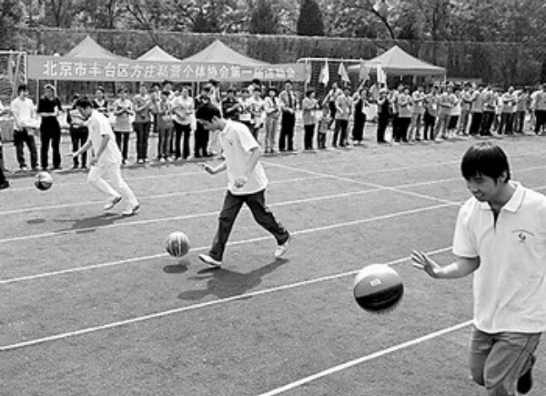 图1:北京丰台区方庄社区举行私营个体企业第一届运动会。