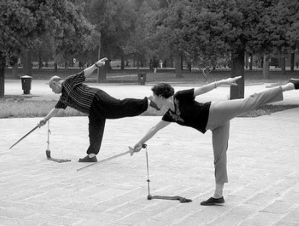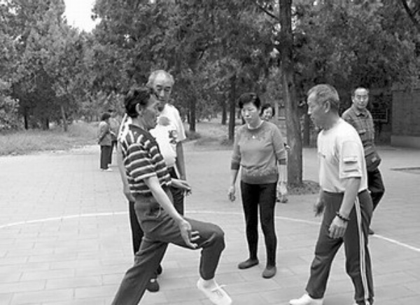 图2、图3:北京天坛公园的晨练队伍。