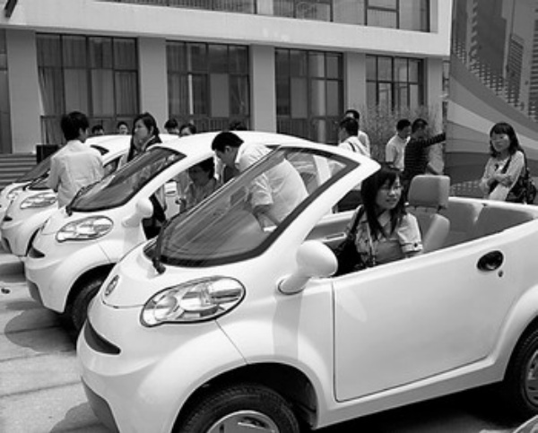 图1:常州麦科卡电动车辆科技有限公司首批电动车交付。麦科卡电动车用普通220伏电压即可充电,车速最快每小时50公里。