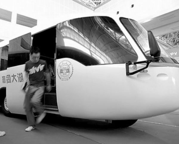 图4:由湖南大学和湖南同心实业股份有限公司自主研发制造的菱形客车,底盘呈菱形,车轮呈菱形分布,具备阻力小等特点。