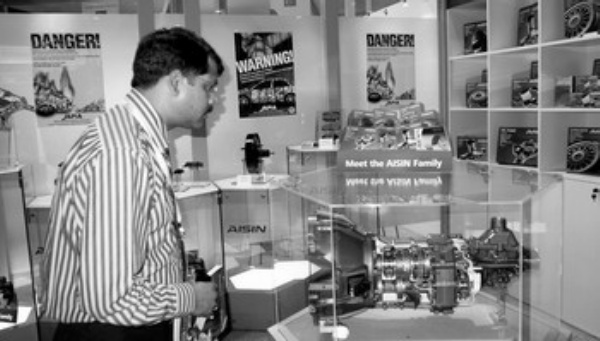 “2009中东国际汽车配件博览会”于5月31日至6月2日对公众开放,节能环保理念成为众多参展商极力打造的卖点。图为日本著名汽车零部件供应商爱信精机株式会社(AISIN SEIKI)展出的新型节能自动变速箱模型吸引了参观者驻足观看。