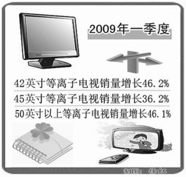 在等离子电视方面,随着显示面板国产化,大屏幕等离子电视越来越受到消费者的青睐。