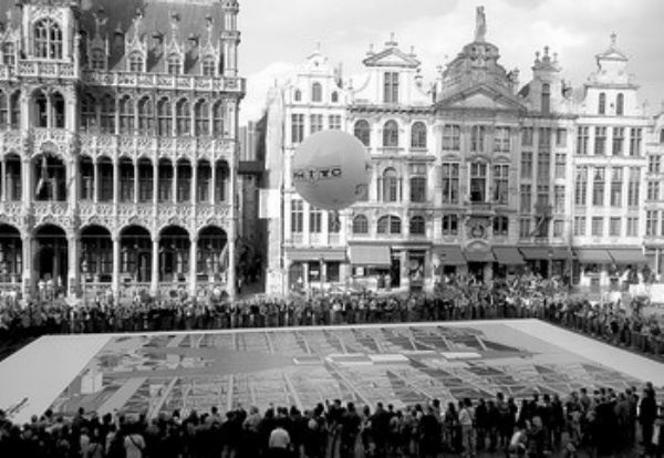 图1:比利时2009动漫年活动中,布鲁塞尔市政厅大广场上展出的“丁丁飞往太空”巨型漫画。