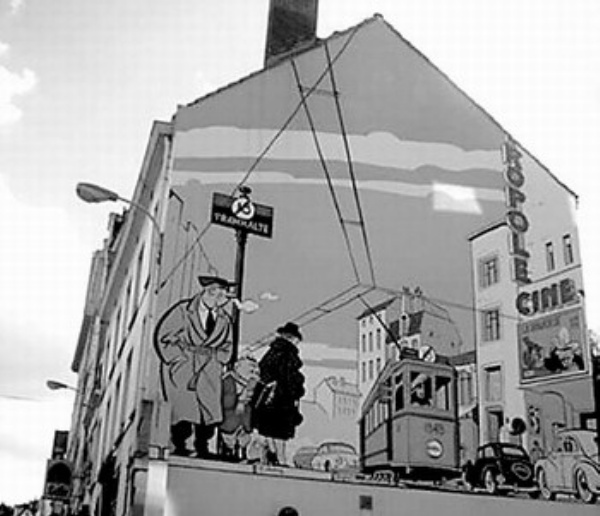 图2:比利时布鲁塞尔临街建筑物上的巨幅卡通画。