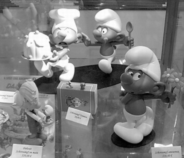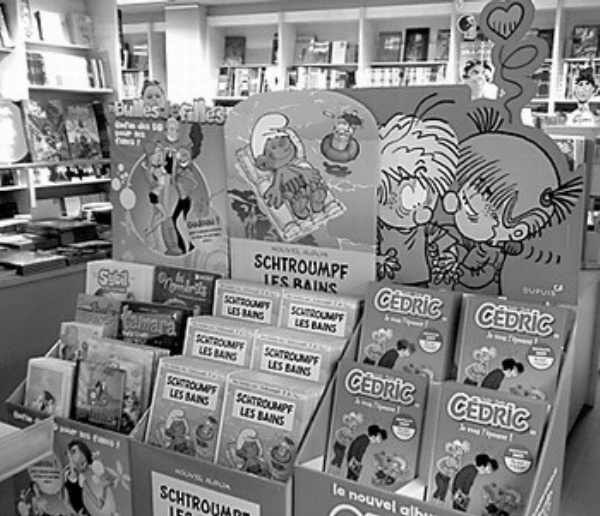 图3:比利时书店内的动漫画册,“蓝精灵”题材随处可见。