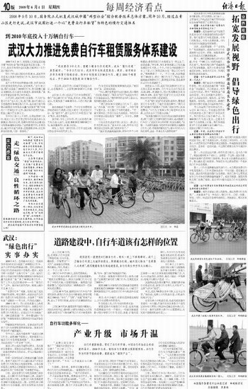 到2010年底投入十万辆自行车———武汉大力推进免费自行车租赁服务体系建设