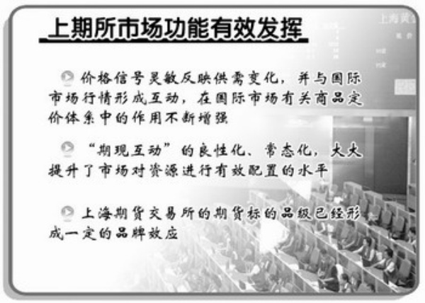 | 上期所成立10年来,交易品种和市场规模稳步成长,市场功能得到了有效发挥,与国际市场行情形成互动,在国际市场有关商品定价体系中的作用不断增强。 |
