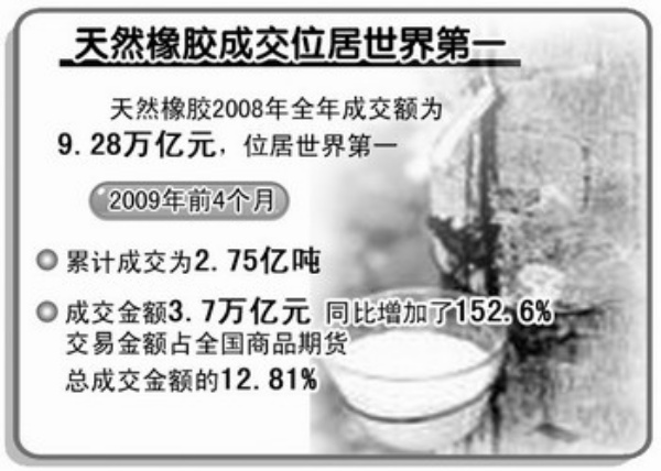 | 上期所去年成交金额28.87万亿元,占40%的市场份额,同比分别增加了64%和25%。天然橡胶去年成交额为9.28万亿元,交易规模已经超过了东京市场,位居世界第一。