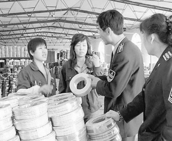 上图:不久前,北京市质量技术监督局的工作人员对辖区内电线电缆CCC获证企业和大型批发市场上的外省市电线电缆CCC获证产品开展强制性监督抽查。 志 坚摄