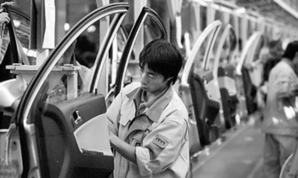 下图:中华骏捷FRV车间,工人正在生产线上忙碌着。