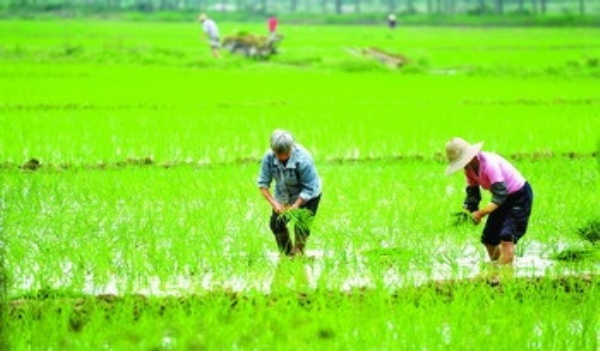 6月11日,湖北省襄樊的农民在田里插秧。 连日的暴雨天气过后,天气转好,湖北省各地农民抢抓夏种时节,开始在农田里插秧。 新华社记者 郝同前摄