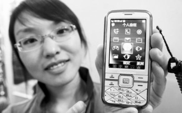 2009中国国际智能卡与电子标签博览会在京举行。 6月3日,工作人员展示可刷卡的手机。该手机不仅可在公交、出租车、地铁等公用POS设备上刷卡计费,还可通过手机上的应用软件查询卡内余额。 新华社记者 陈晓根摄