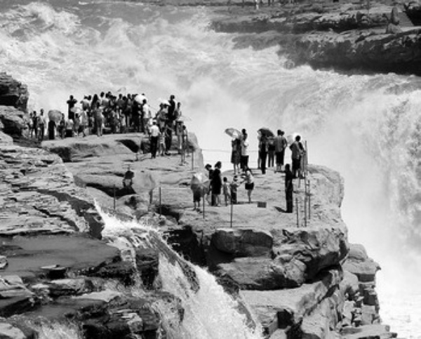 6月14日,游客在黄河壶口瀑布观赏“白浪滔天”的壮观场面。